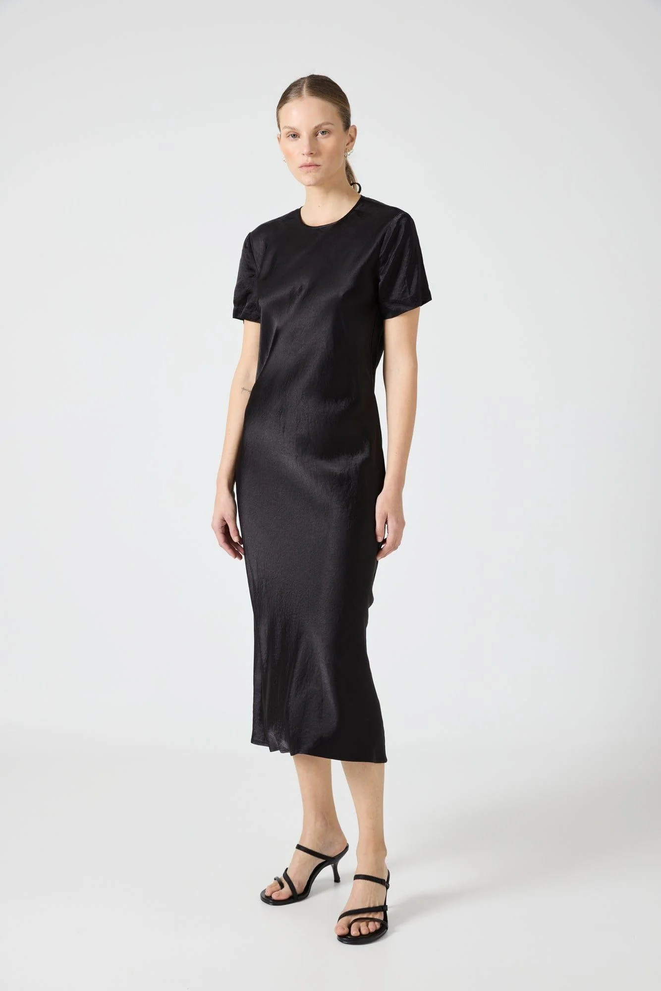 CRUSH BIAS TEE MIDI DRESS | BLACK