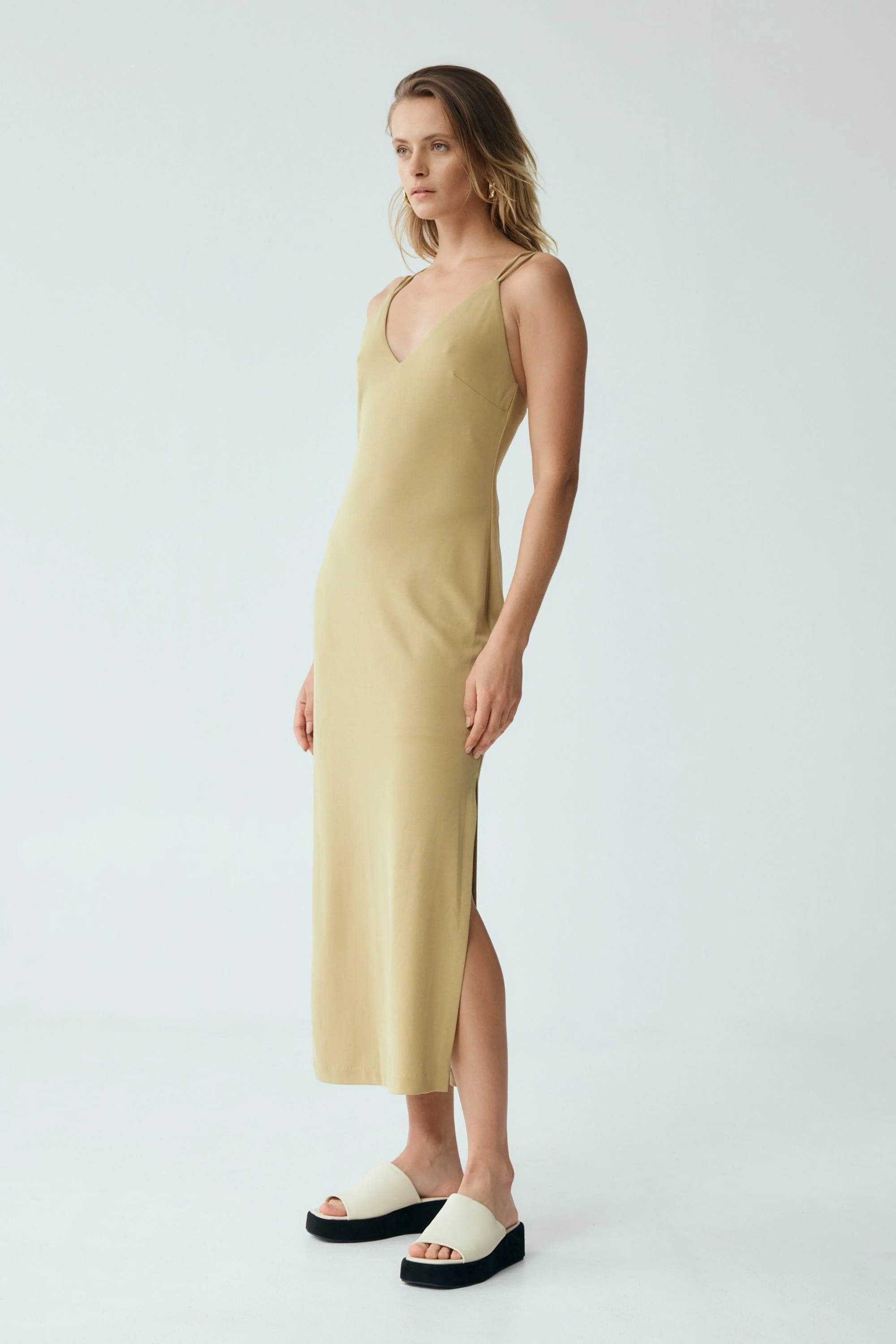 FORM CROSS BACK MIDI DRESS | KHAKI