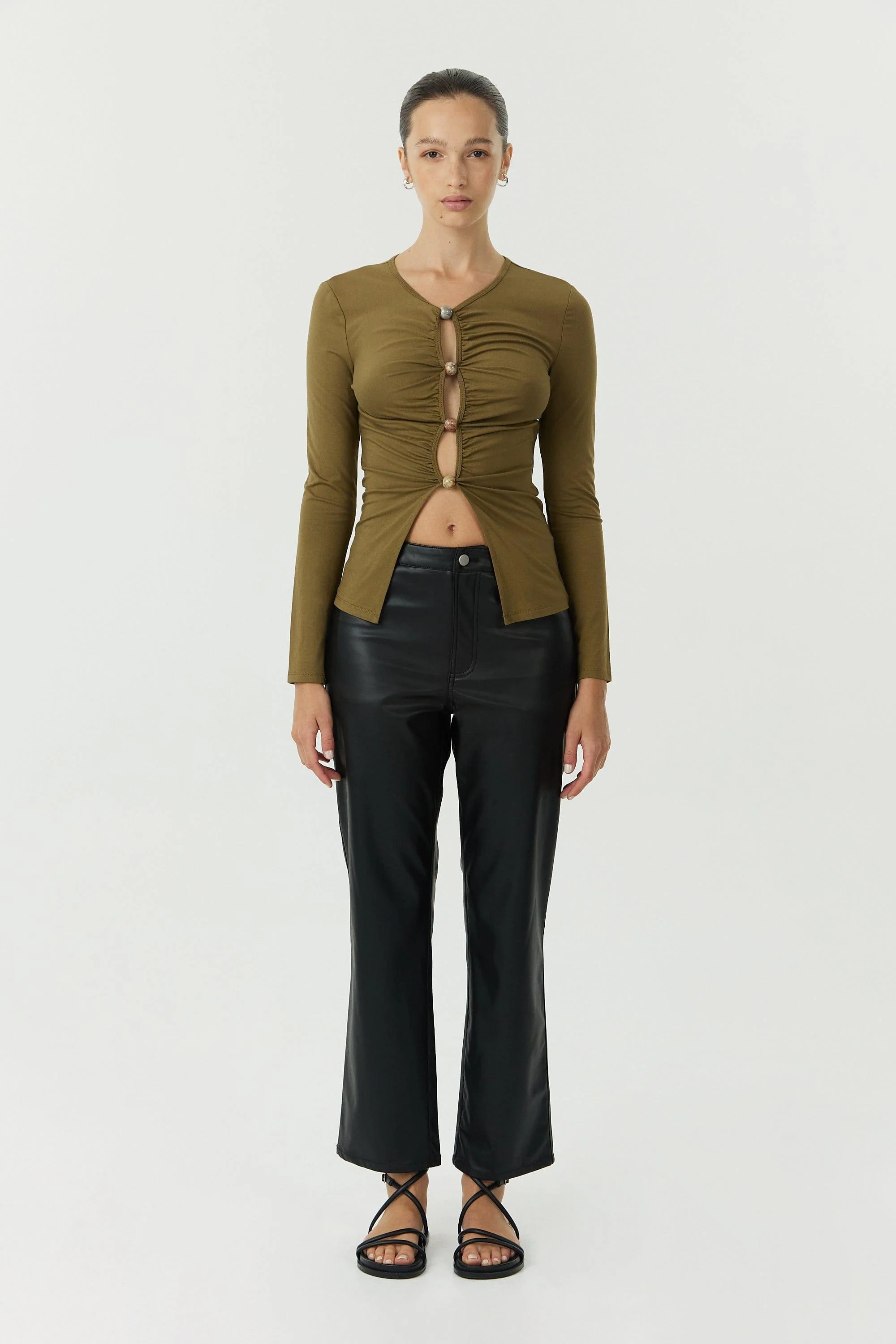 Elevate your wardrobe with the Hidden Gem LS Top and add a touch of allure and refinement to a staple piece. This top is crafted from 92% bamboo and 8% spandex, offering a light-weight, soft-touch stretch fabrication that provides a level of comfort beyond compare. Adorned with organic custom-cut stones in a mesmerising marble effect, each piece is unique, showcasing the beauty of organic materials. The centre cut-out keyhole features and gathering detailing at keyholes add a touch of seduction and refinement to this versatile piece.