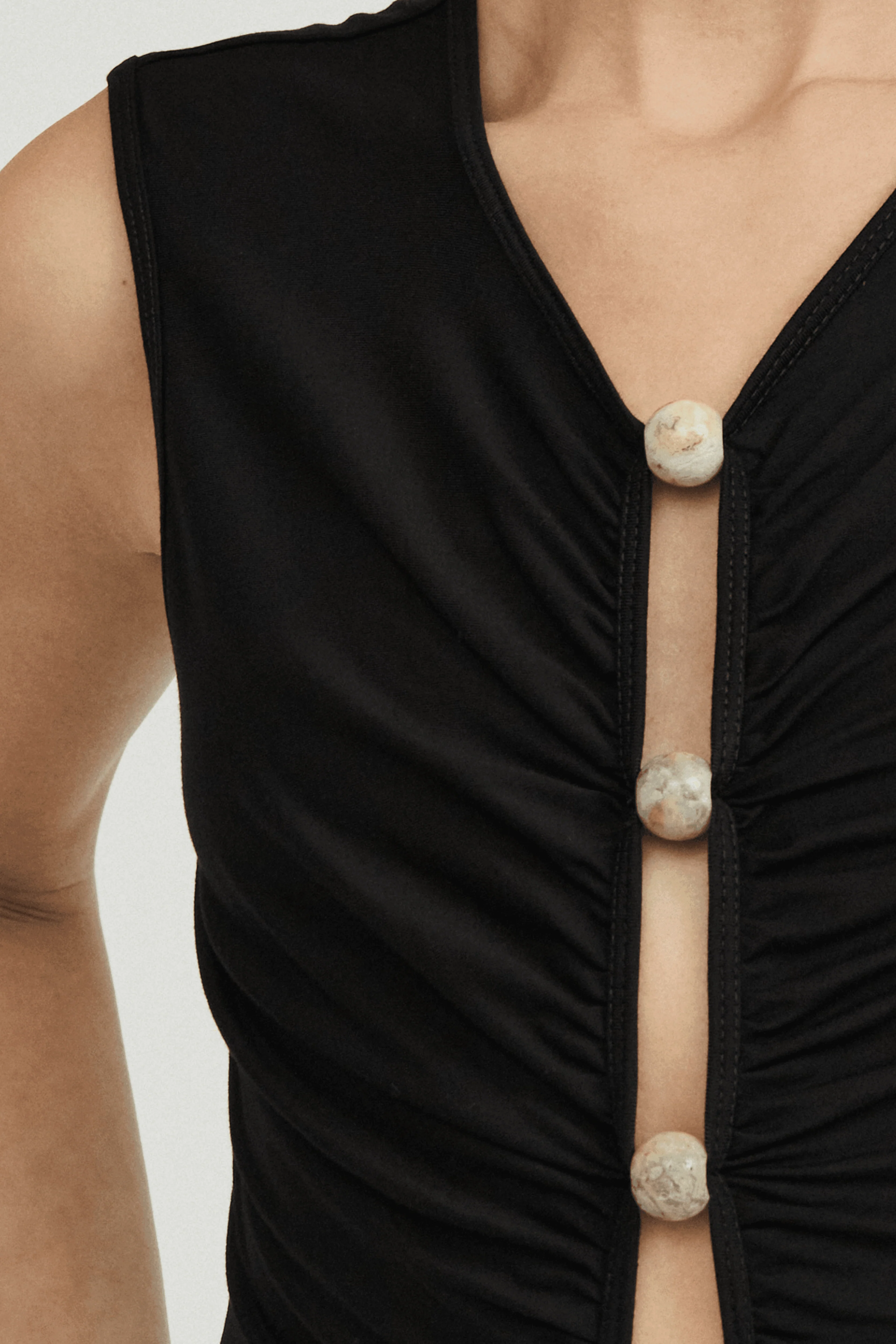 Modern femininity takes form in our Hidden Gem Tank Maxi Dress. The dress is expertly crafted from 92% bamboo and 8% spandex, offering a light-weight, soft-touch stretch fabrication that feels luxurious against your skin. This dress is a celebration of organic beauty and sophistication, adorned with five organic custom-cut stones. The centre cut-out keyhole features and gathering detailing at the keyholes, this maxi-length dress is a true work of art. With a slim fit through the body and hip, this maxi tank dress is a timeless addition to your collection.