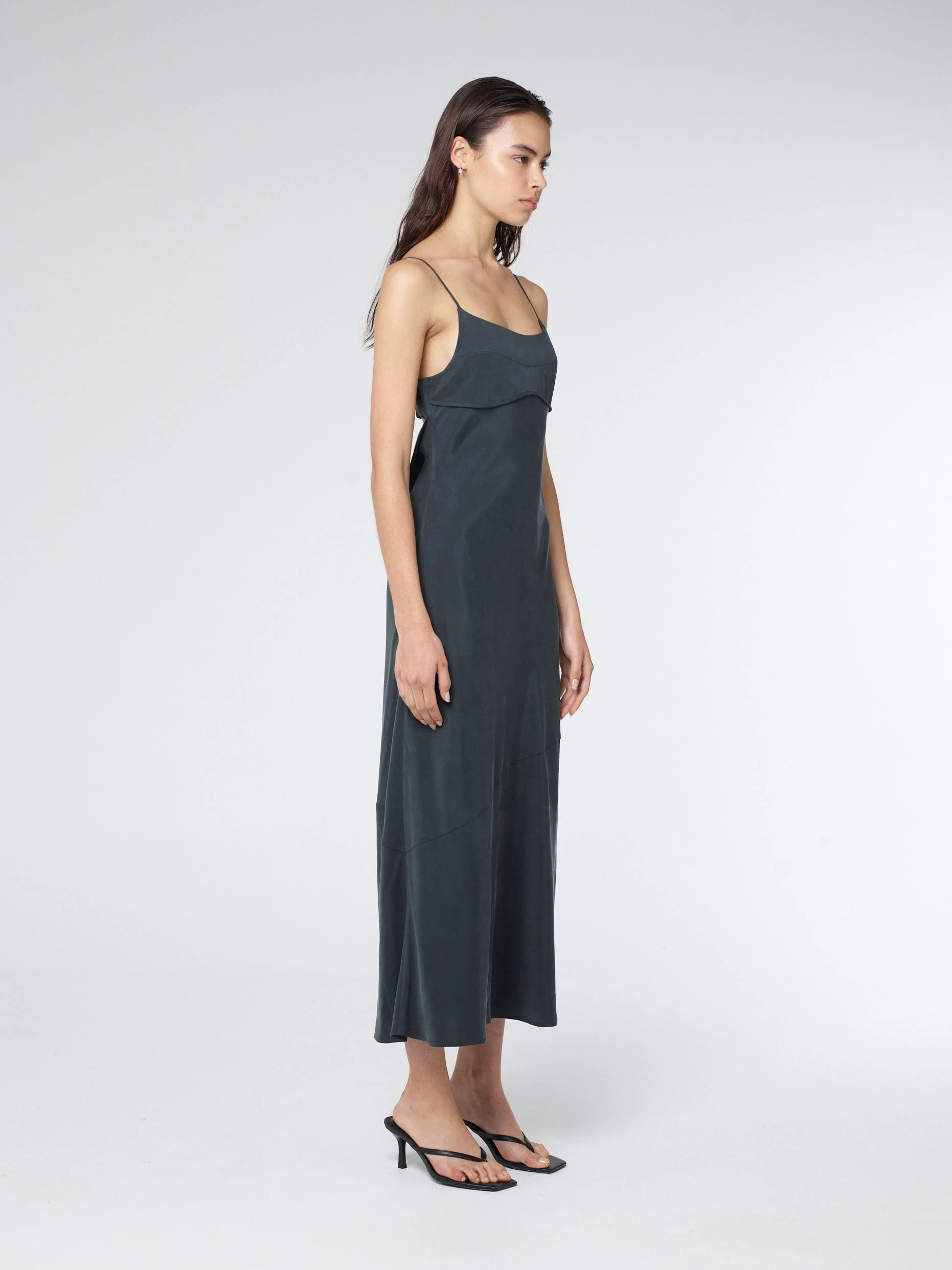 The Luna Bust Panel Maxi Dress is a refined silhouette with a bias-cut design that drapes effortlessly over the body. A structured bust panel with bind detailing enhances shape, while the cut-away back cowl adds an elevated detail.