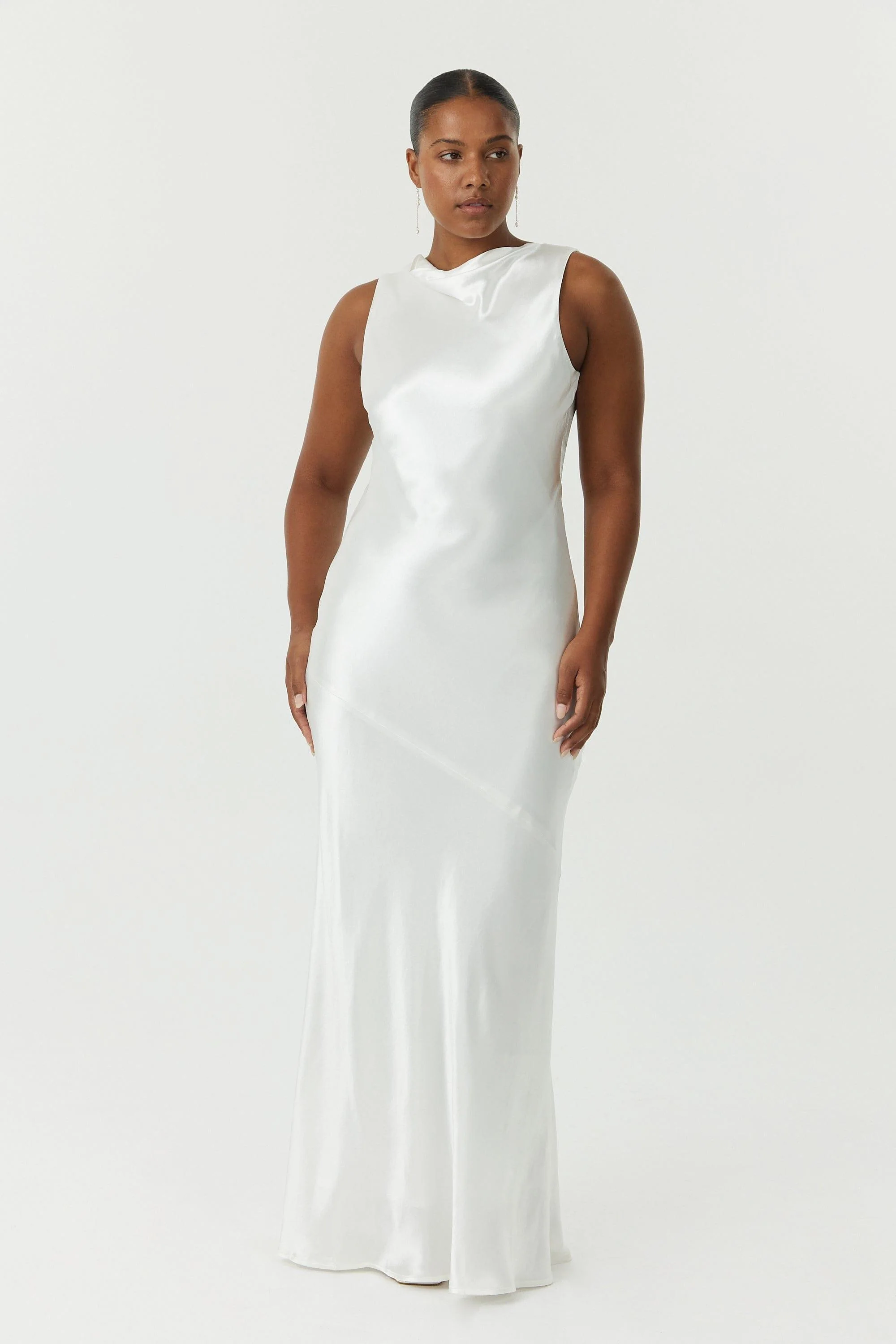 SATIN BIAS COWL BACK MAXI | POWDER WHITE