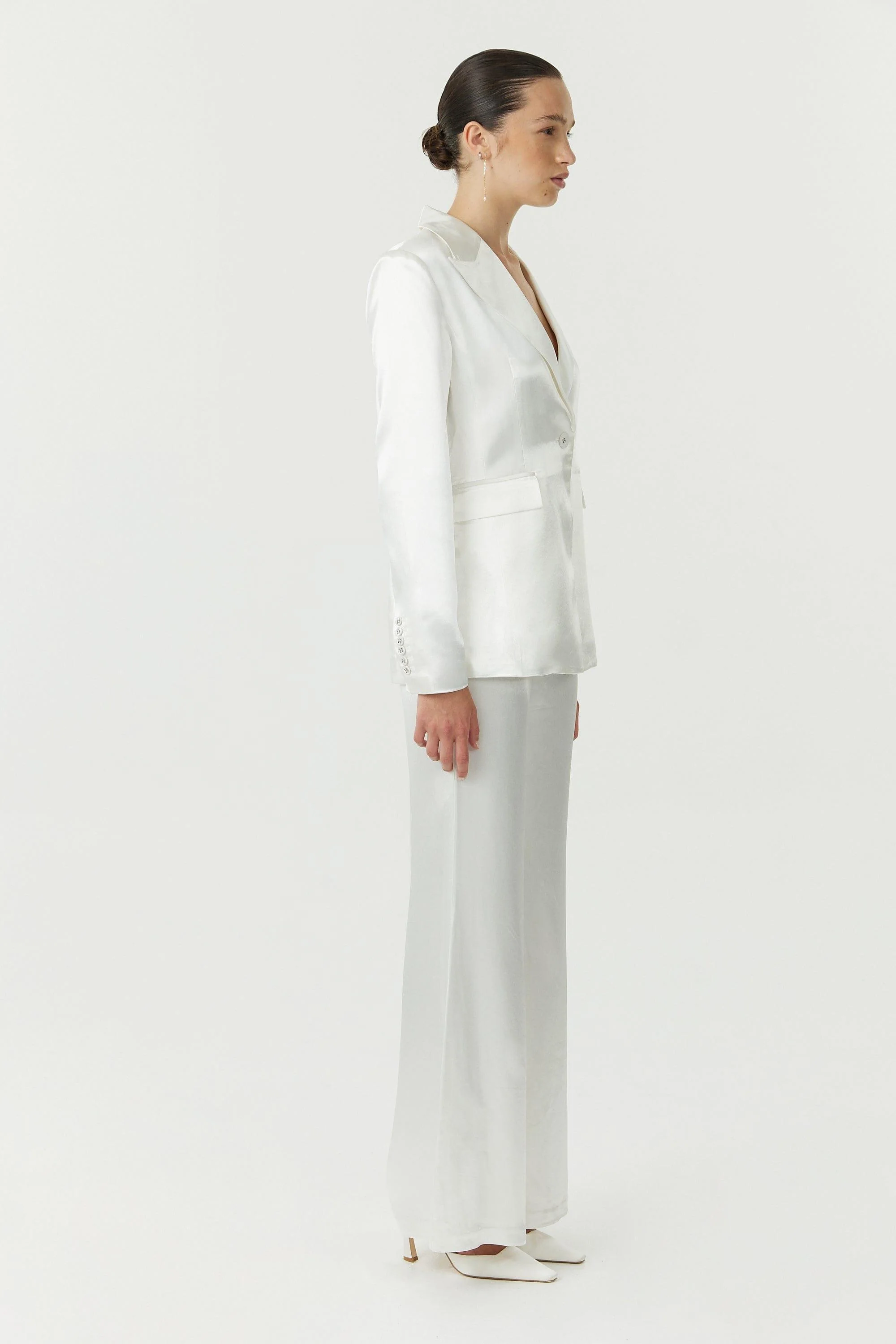 SATIN TIE BACK STRAPLESS MAXI | POWDER WHITE
