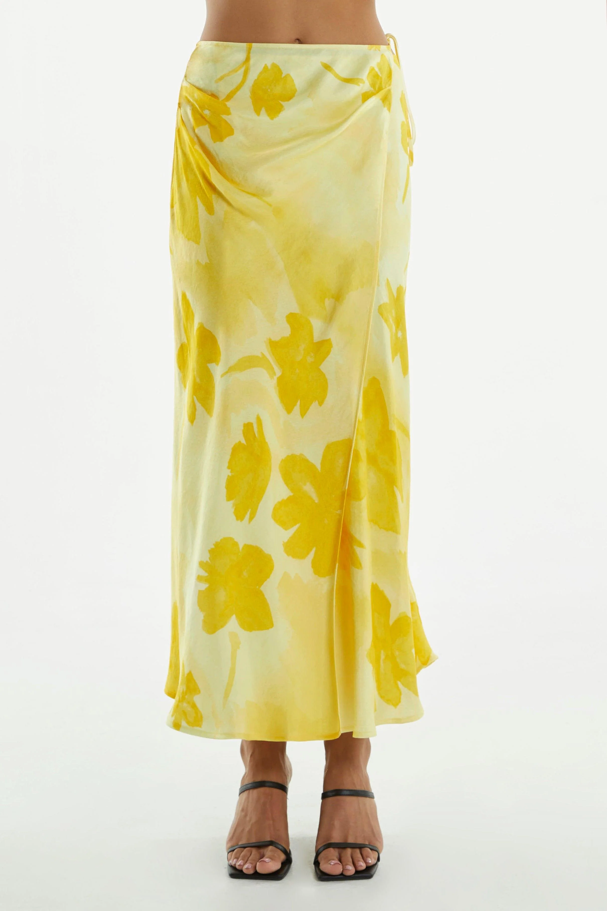 Step into the artistry of our Wild Flower Wrap Skirt, a canvas of floral beauty hand-painted in our design studio. The flowing watercolour effect brings a sense of fluidity to the fabric, enhancing its natural charm. Cut on bias, this wrap skirt is designed for versatility, featuring a flattering midi length that sits gracefully on the waist. Unlined for a light and airy feel, the side tie adds a hint of romance to this botanical-inspired skirt.